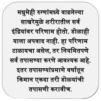 मधुमेही रुग्णांनी घ्यावयाची डोळ्याची काळजी